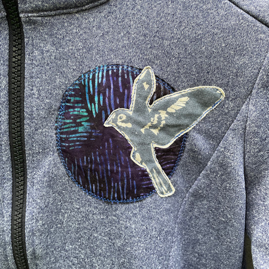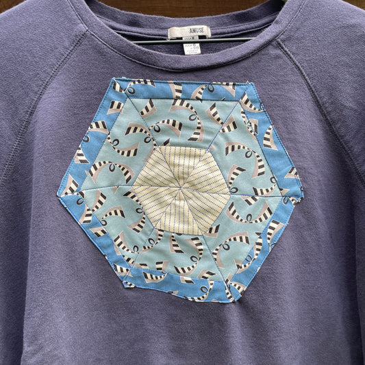 Blue Sweatshirt with Quilt Square Appliqué (size medium)