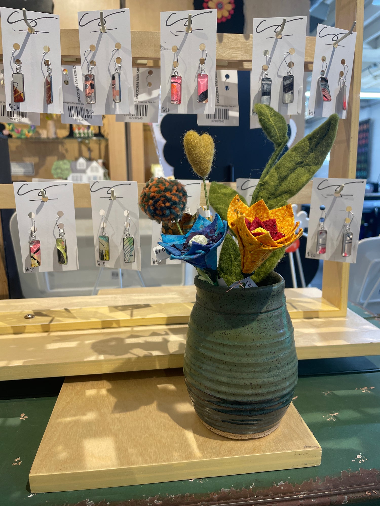 While working on upholstery & other projects, she often felt the need to rescue beautiful fabric scraps from ending up in the trash. Somewhere along the way she created her signature upcycled fabric flowers, which blossomed into this small business.