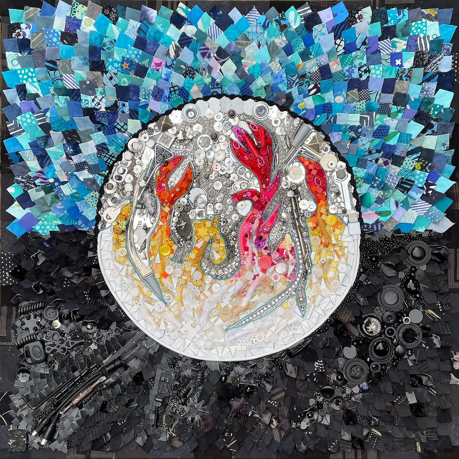 Displayed at Cocoon Art Space as part of the I Heart Recycled Art group show in 2025.