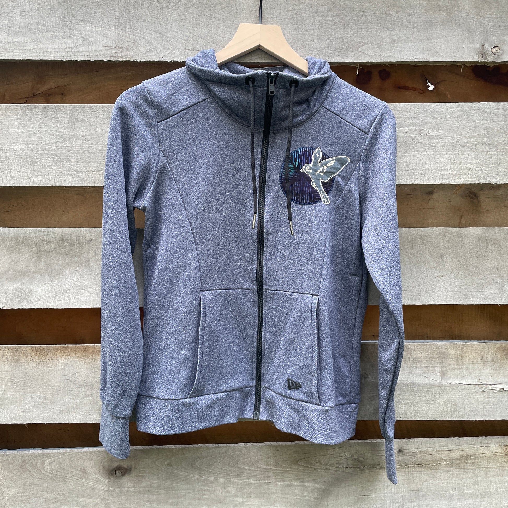 Blue Hoodie with Bird Appliqué (size small)